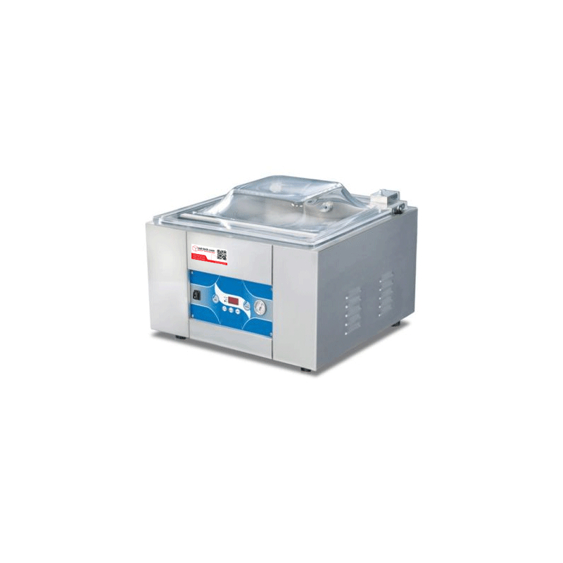Designet med og til de mest krævende kokke, standard udstyret med et pålideligt kontrolsystem, inklusive en 9-programhukommelse, digital skærm og en lang række funktioner. Denne bordmodel er CE-kompatibel; Den robuste vakuumemballeringsmaskine i rustfrit stål kan også pakke og beskytte alle de sprøde og sarte produkter på samme tid.
